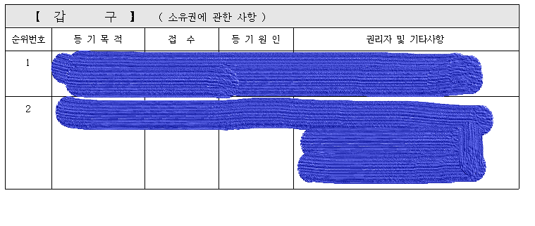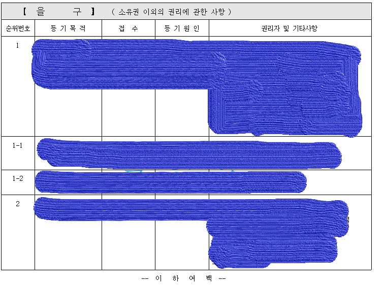 을구에는 소유권 이외의 권리 등이 기록되어 있습니다.