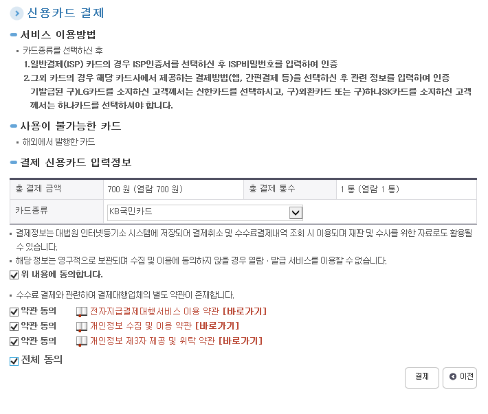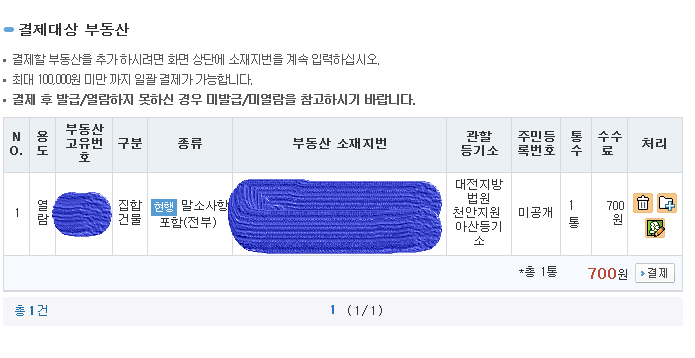 다만 소액의 수수료가 발생하는데 열람은 700원 / 발급은 1000원입니다