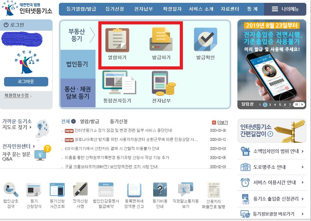 등기부등본을 열람/발급하는 방법은 간단한데요